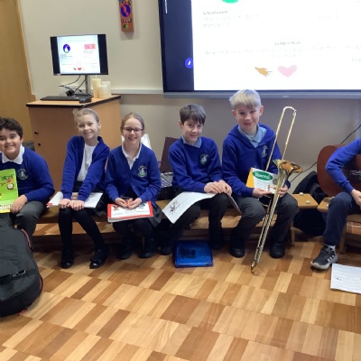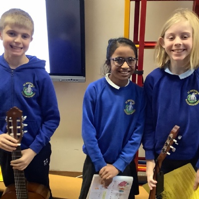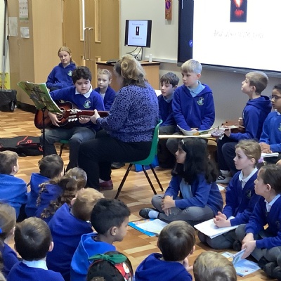 Jaiden plays a wonderful song on the guitar in our marvellous music assembly.