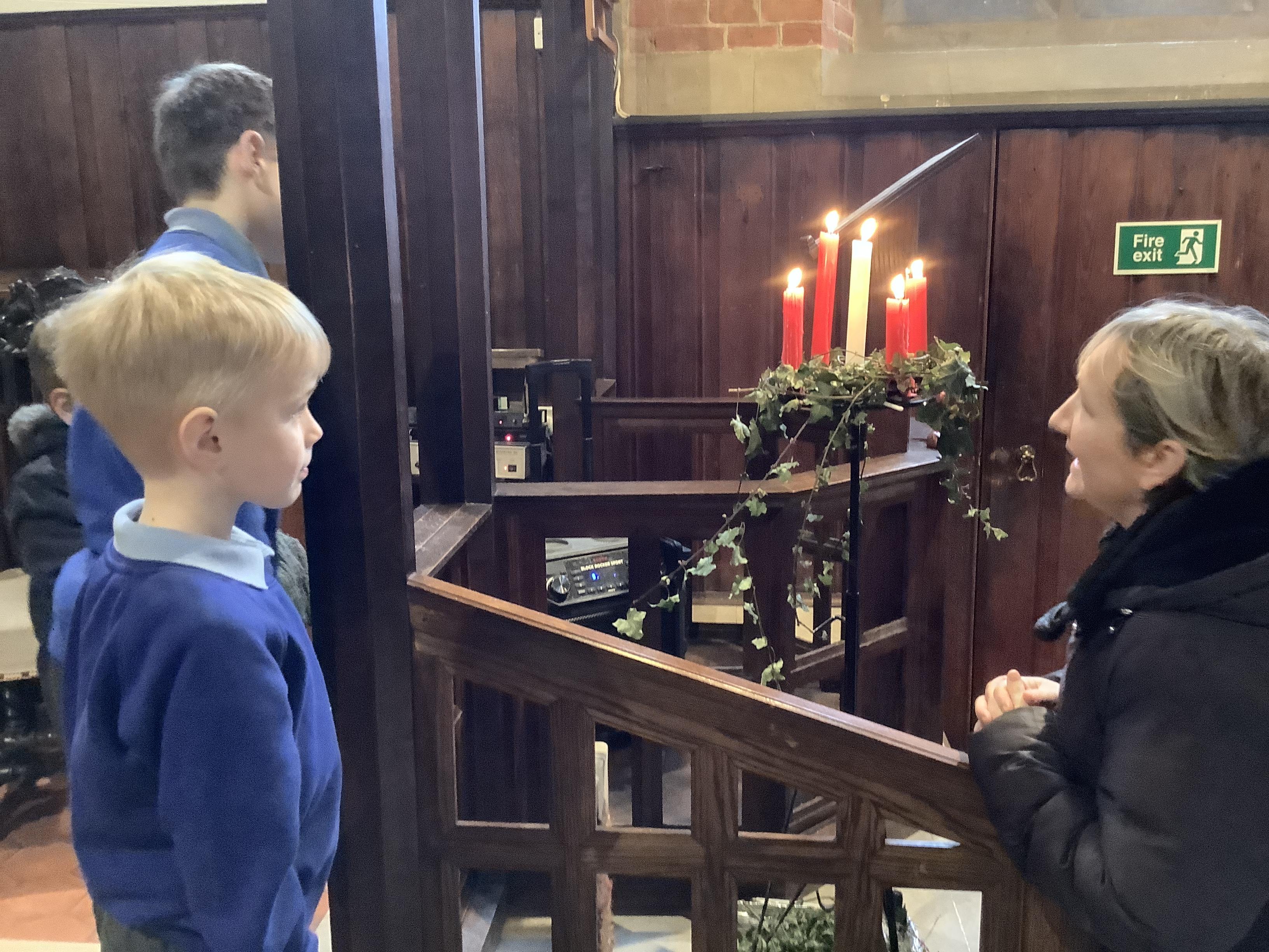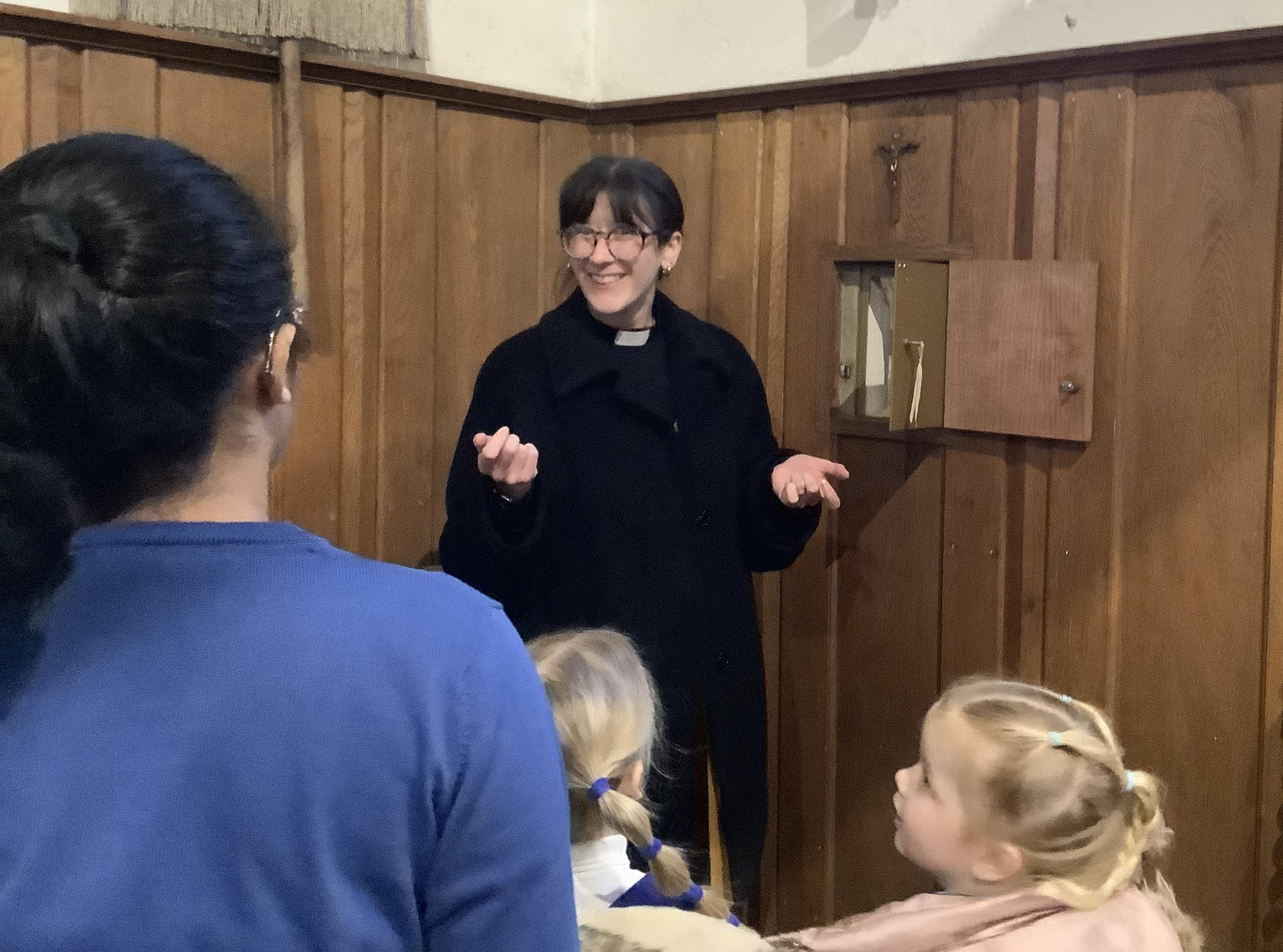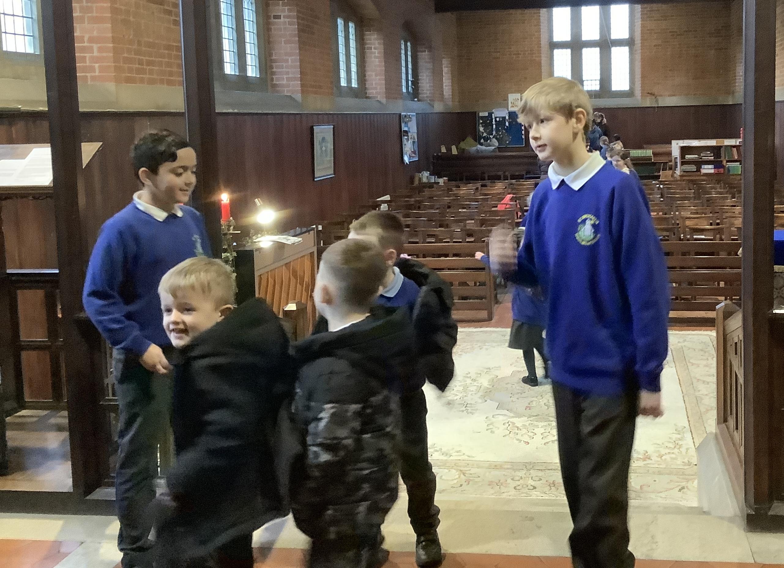 Spending time exploring and learning about the church with Reverend Christie and our buddies