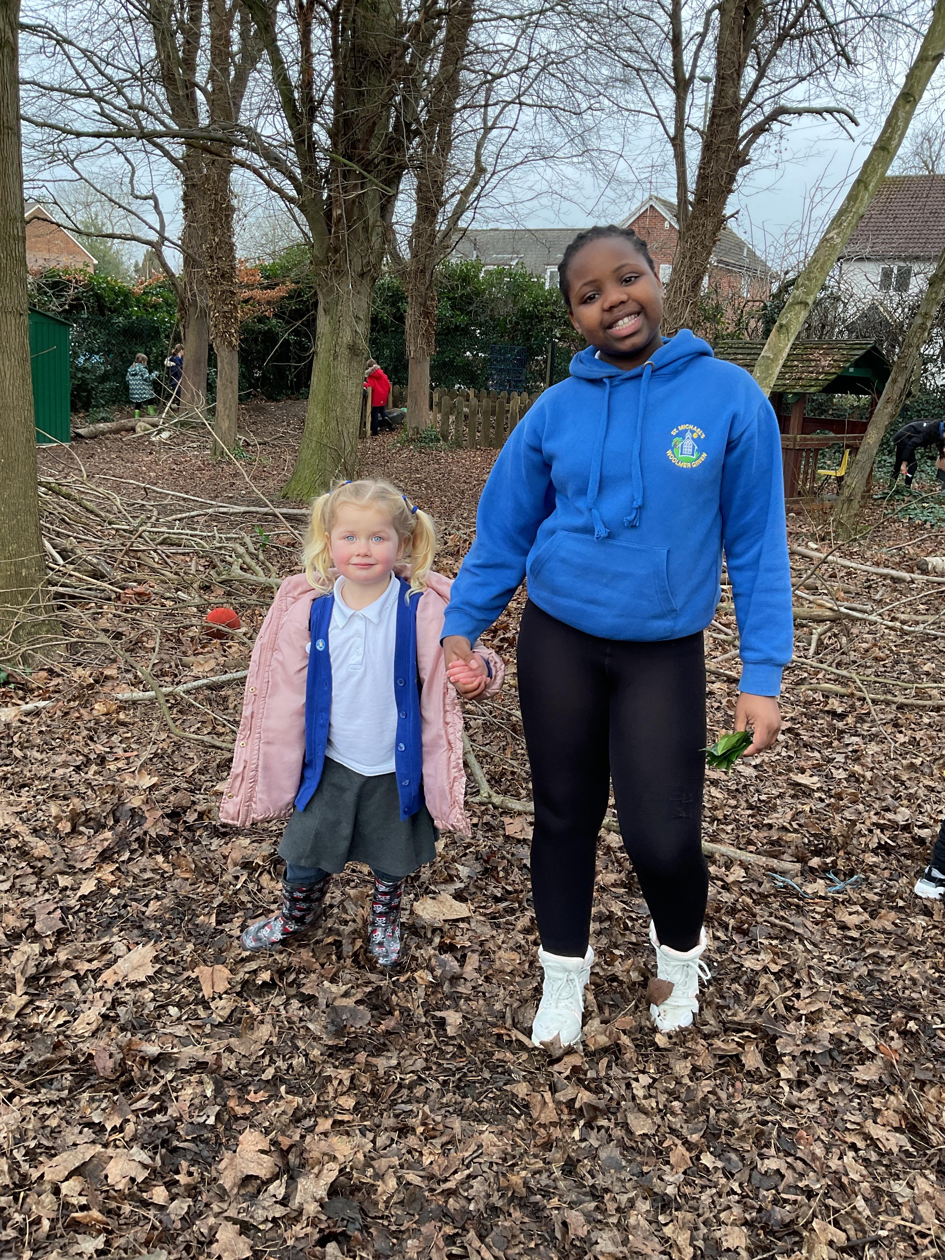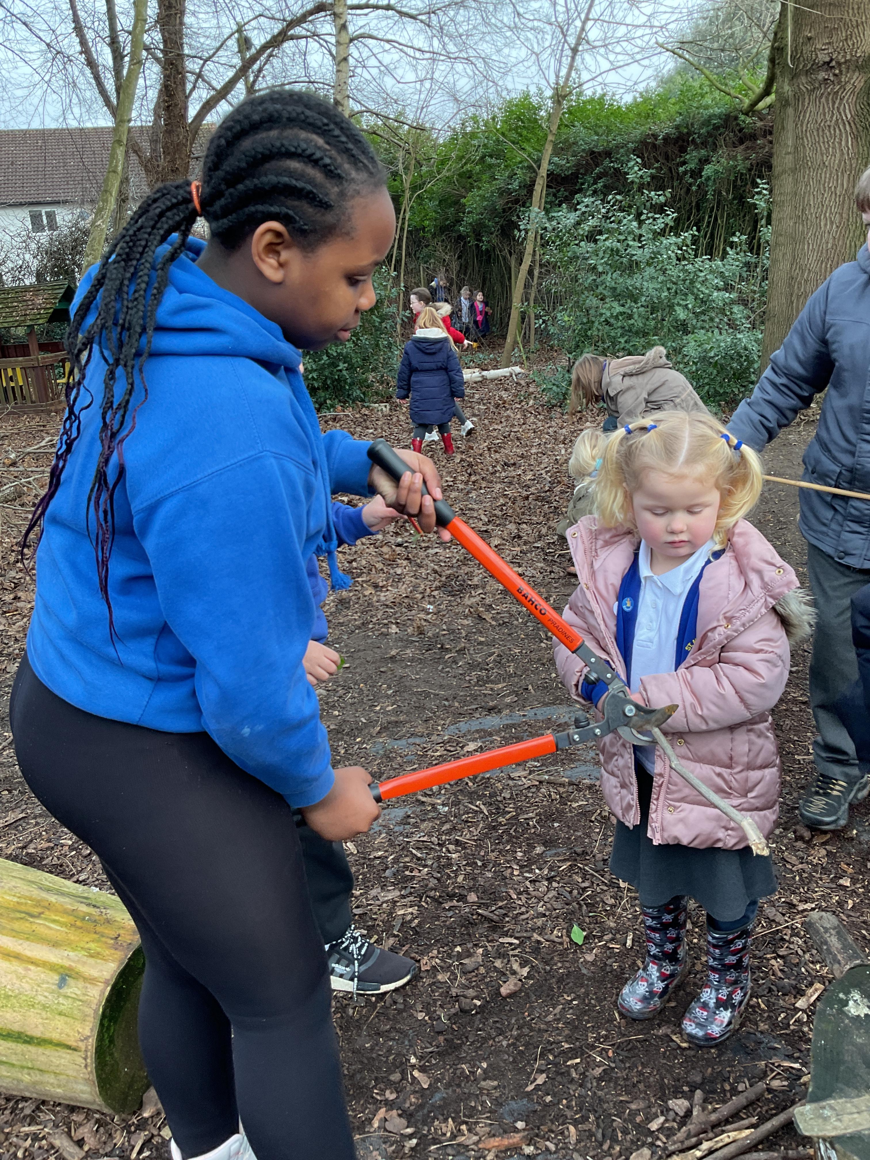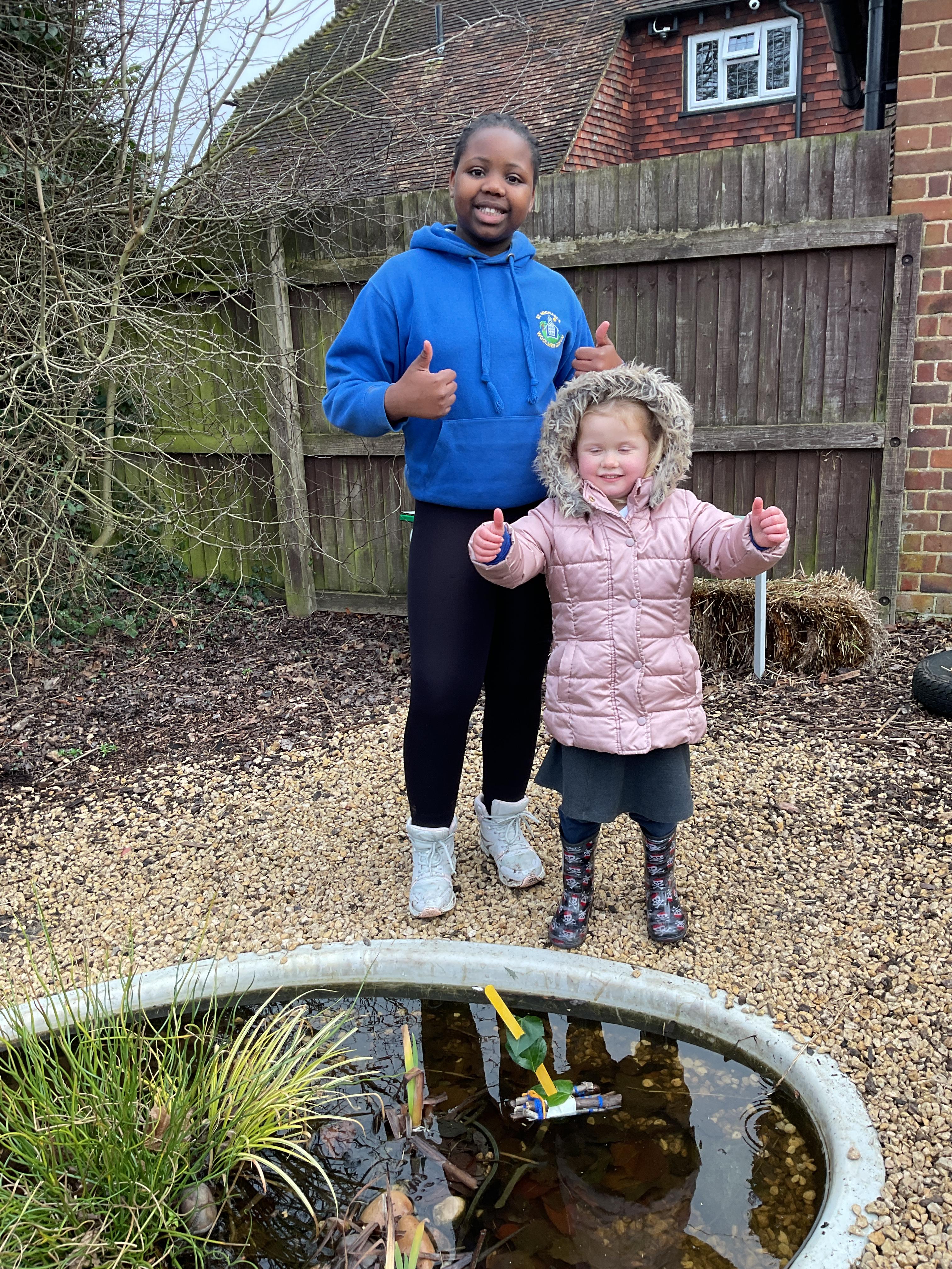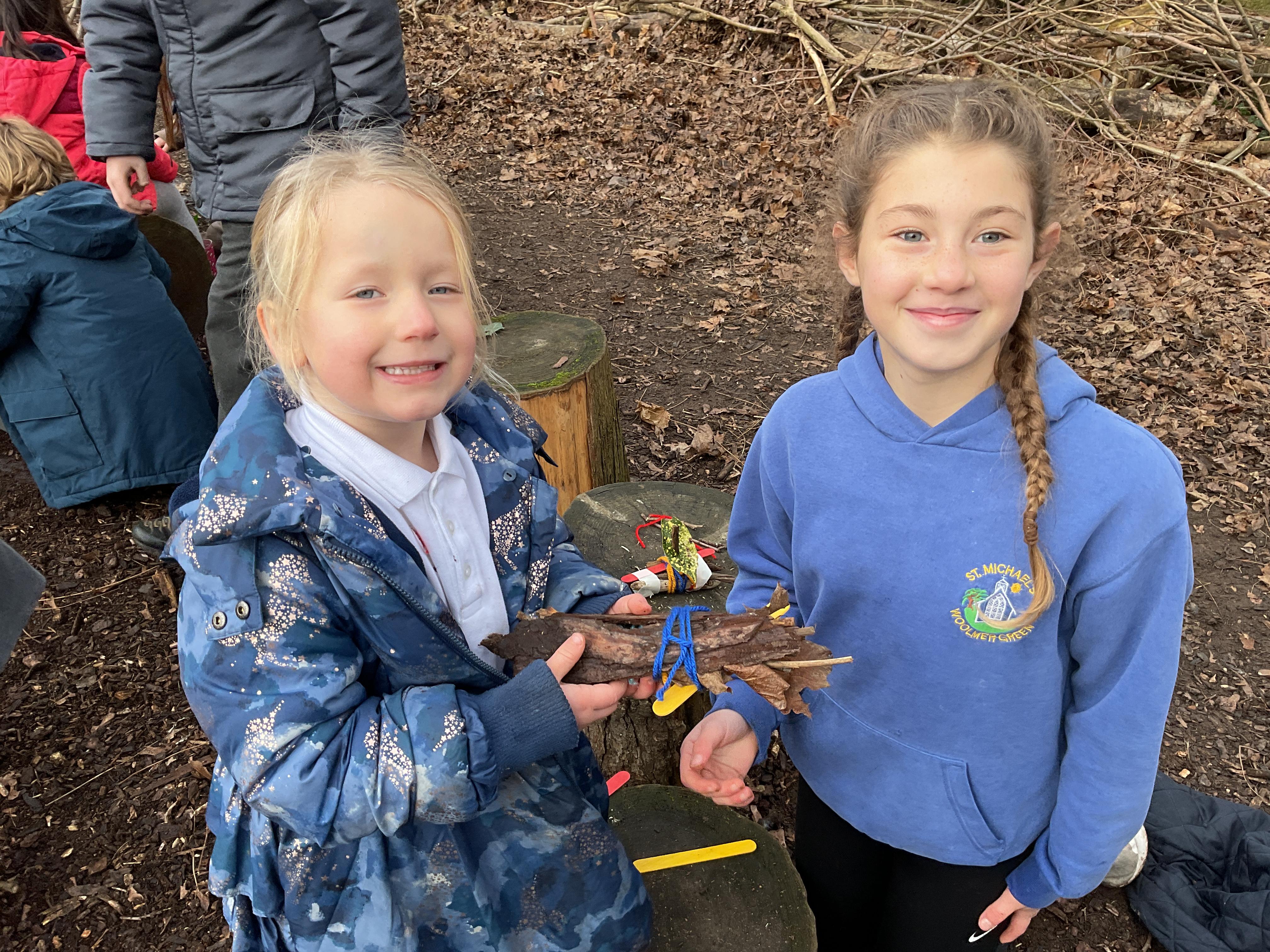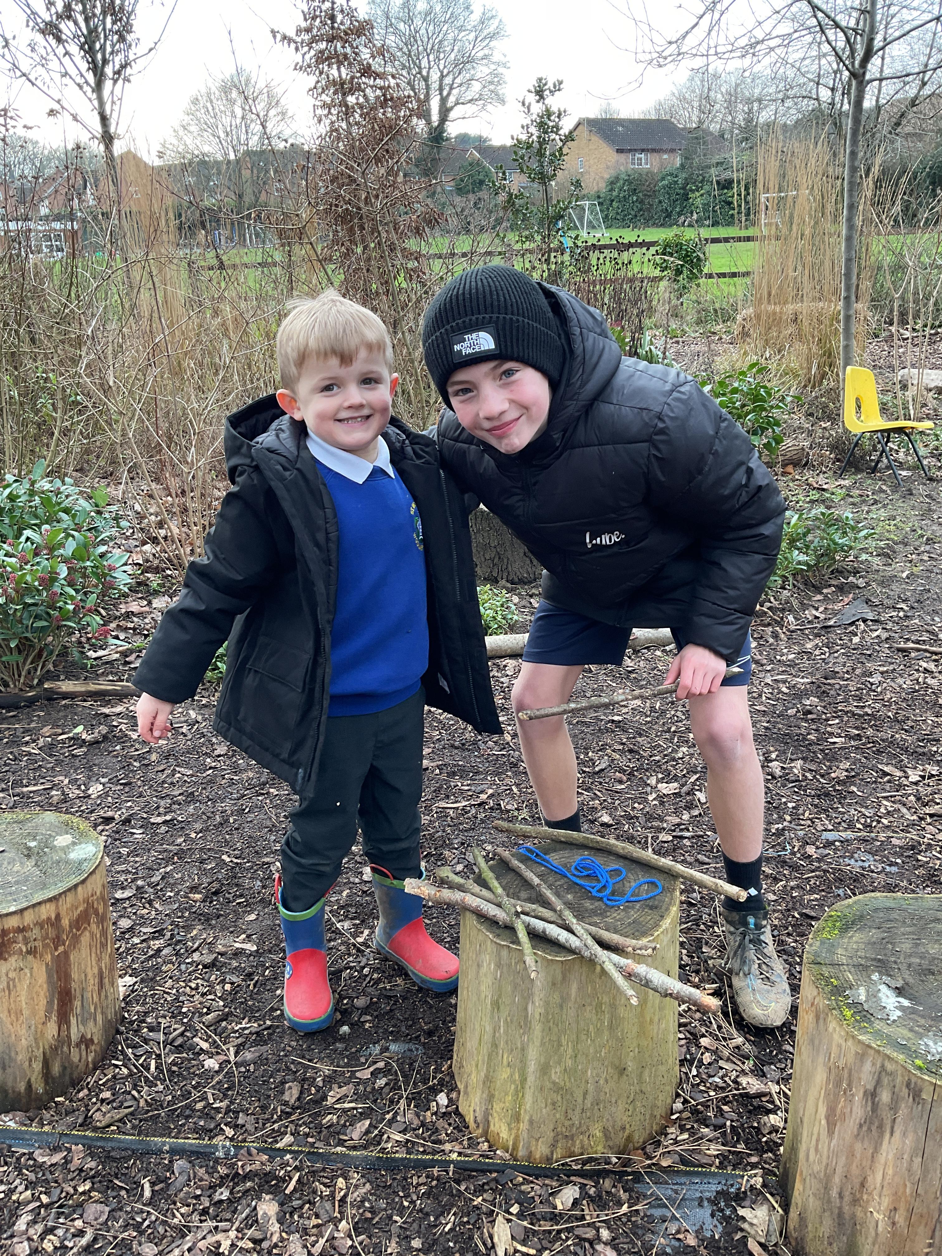 Spending time in nature in Forest School, building boats with our buddies!