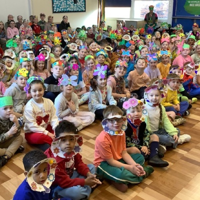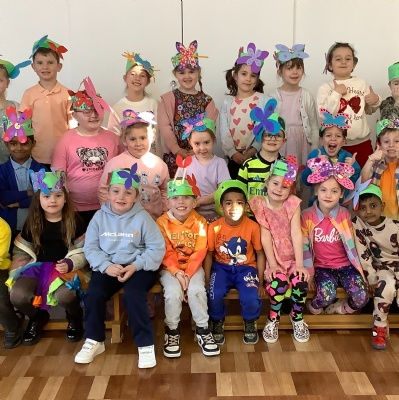 This year we chose Flower Block by Lanisha Butterfield as our whole school text and the children dressed in bright colours with their flower masks.